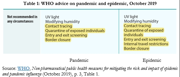What did (well funded) public health organisations (WHO?) have to say about vaccines and how to manage pandemics before and during Covid?