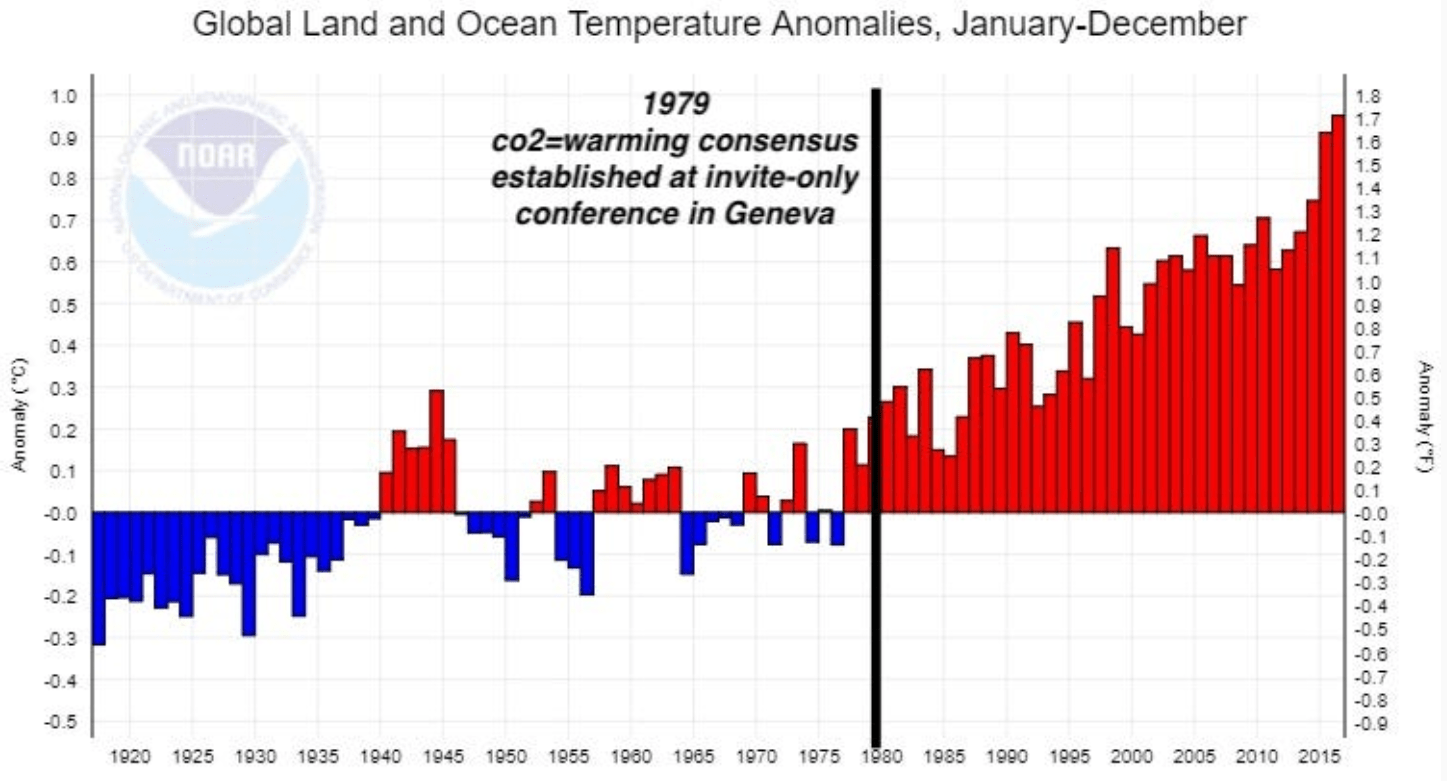 • A lot of data manipulation occurred to support the climate narrative; especially once raw data showed a downward trend in global temperatures after 2001. For example, a decision was made to primarily use temperature monitoring stations in hotter areas (while throwing out many more stations in colder areas) and then using the remaining (hotter) stations to extrapolate (hotter) temperatures for every single station (e.g., those in the colder areas). Similarly, numerous “adjustments” were made to the raw data, which increased the final temperatures.