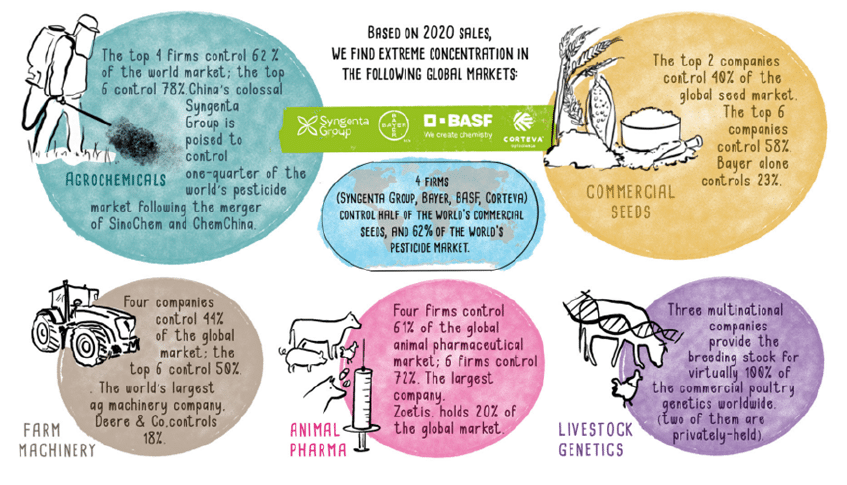 Also refer Monopolisation of agriculture: A handful of corporations control the inputs and outputs of American farmers [C3]